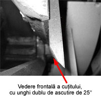 Cuțitele au un unghi dublu de ascutire. Primul unghi al lamelor asigura despicarea, iar al doilea taie lemnul. Acest lucru asigura un nivel acustic scazut si o cerinta redusa de putere.